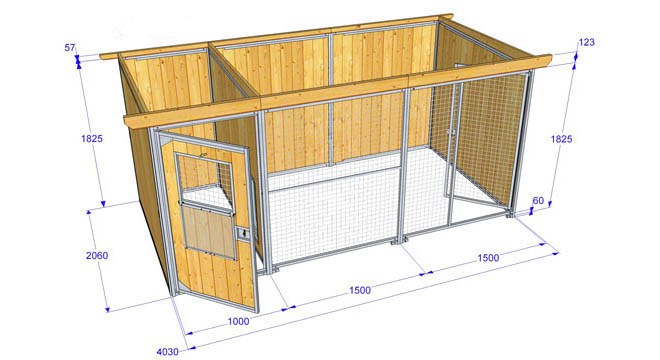 Chenil en bois 4m00x2m00 avec partie nuit