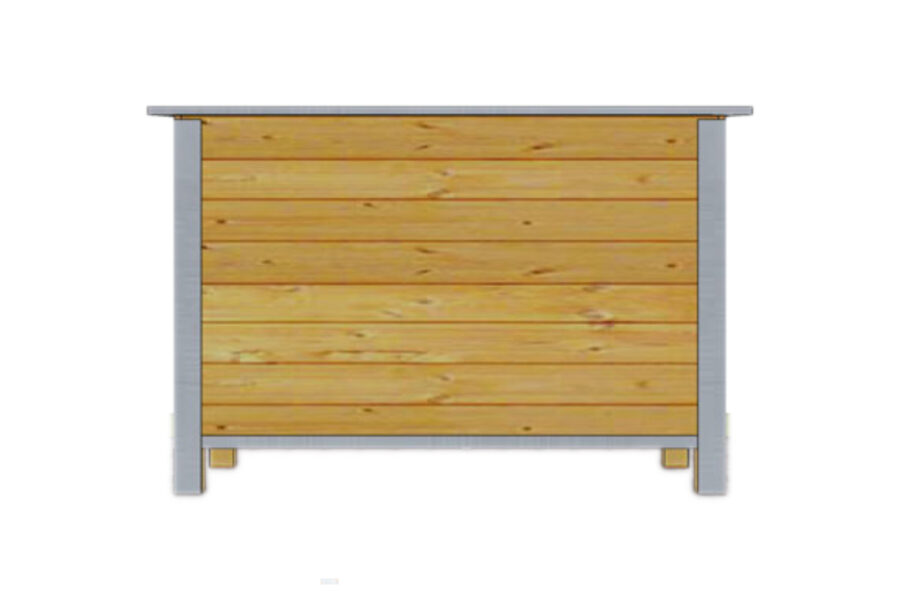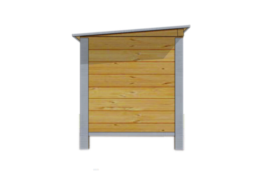 Niche extérieure avec un toit recouvert de tôle galvanisée amovible permettant un nettoyage facile.Toutes les arêtes sont protégées par des profilés en acier galvanisé. Les doubles parois sont assemblées avec des planches en sapin et de polystyrène recouvert d’un contreplaqué à l’intérieur pour une isolation efficace.