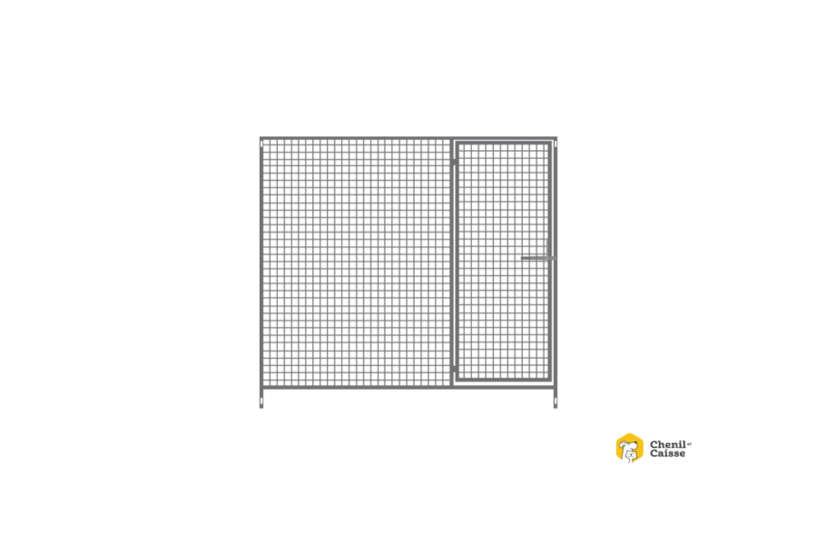 Grille de chenil de largeur 2m00 et hauteur 1m84 avec une porte.